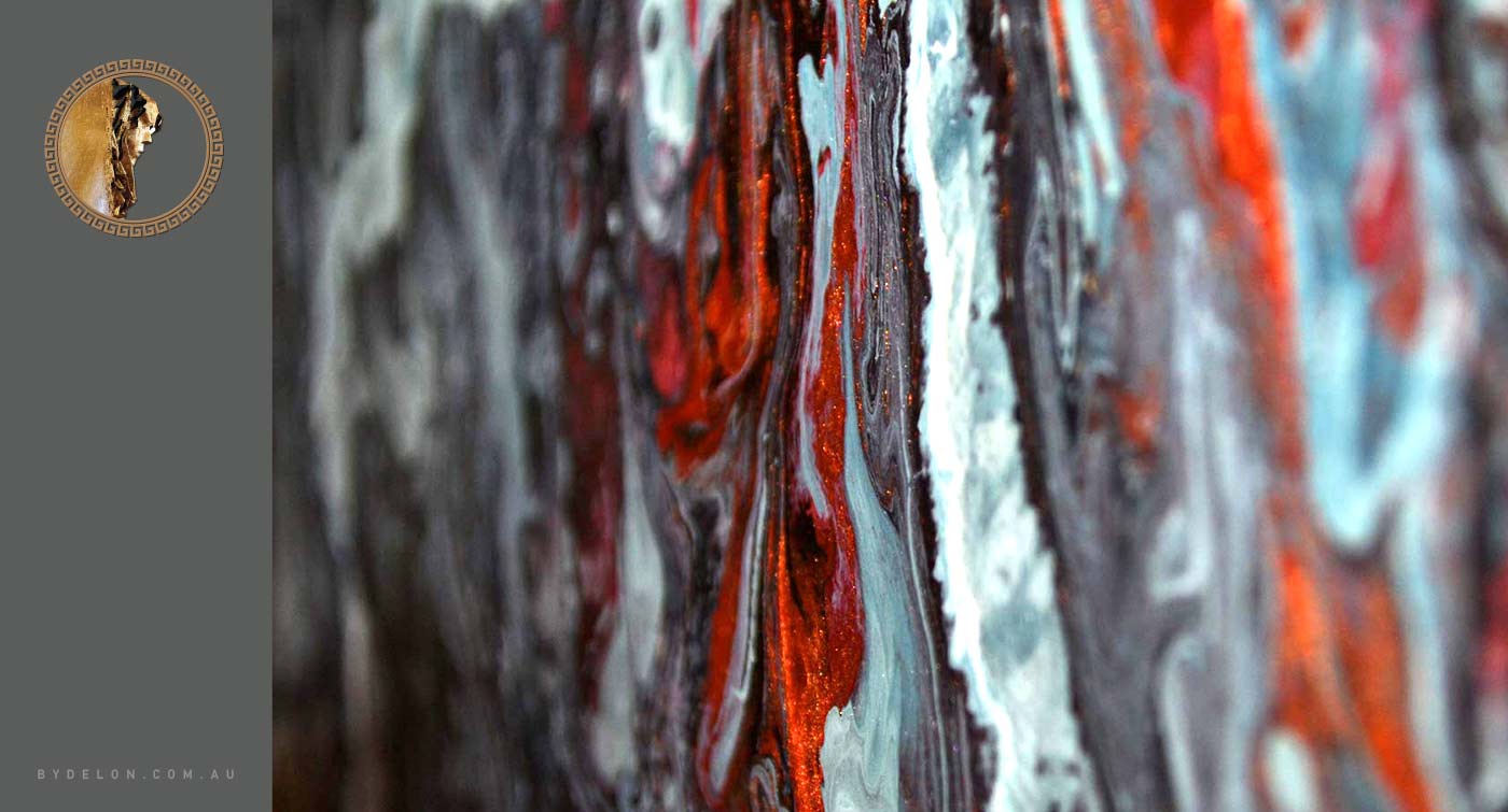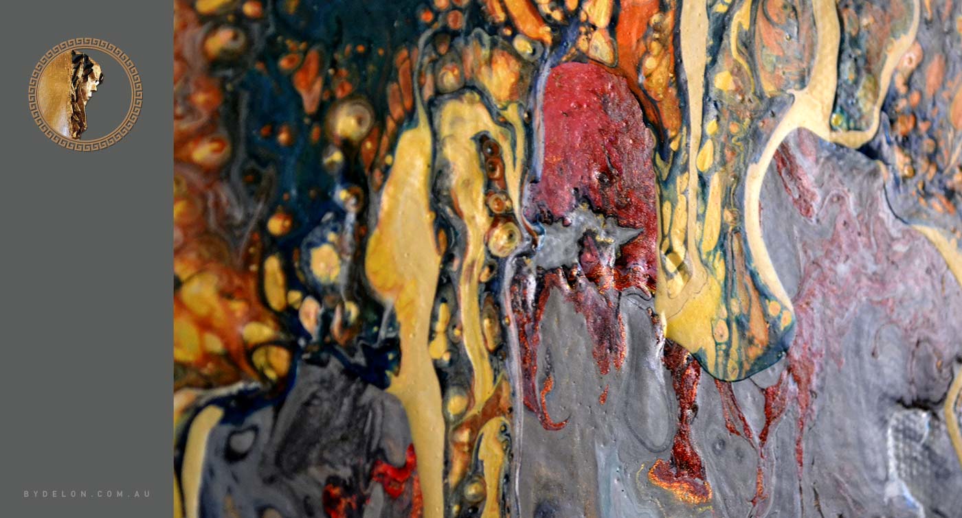 This impressively richly textured, thought-provoking and modern contemporary fluid abstract painting is a perfect option for living or office spaces, to add a bold and exquisite statement to finish any room: from local West Australian, Perth-based Artist, Delon Govender.