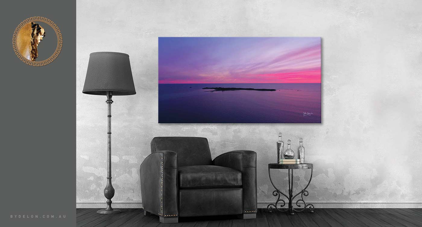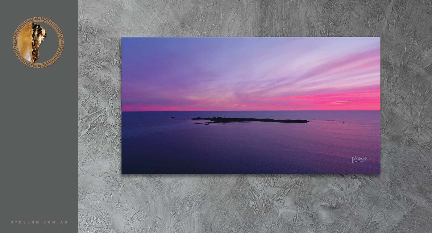 It's hard to believe that this is a no filter aerial photograph - a west coast sunset capture that is simply sensational! The pink and purple hues really are out of this world creating an atmosphere that is somewhat magical. This contemporary & modern coastal landscape artistic image is available in a selection of canvas sizes - unstretched (rolled canvas perfect for postage) and stretched (ready to hang).